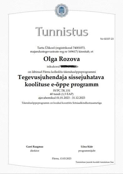 2004. Это актриса и певица с образованием интернационального уровня. Вы допоняли школы образования ? Женщина приехала в Эстонию и Эстонскую республику с этим образованием, это культурный фонд других стран.
